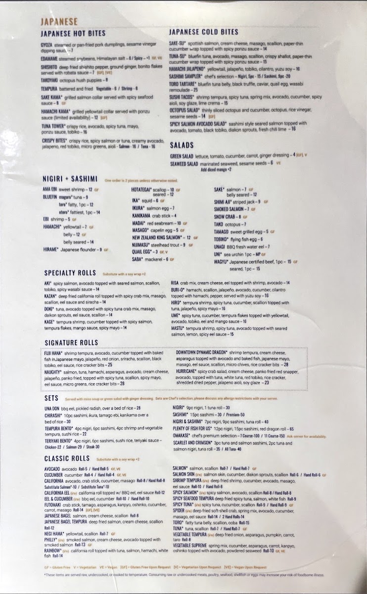 7pc nigiri, 9 pc. sashimi, tuna roll - No substitutions